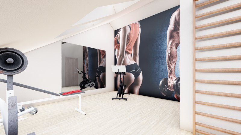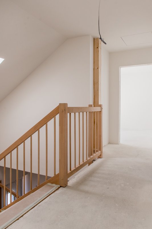 Dům se stává v přízemí z obývacího pokoje s kuchyňským koutem (46,5m2), vstupní chodbou (7,7m2), koupelnou (7,1m2). Z přízemí vede samonosné dřevěné schodiště do podkroví, které tvoří ložnice (20,7m2), pokoj (17,9m2), dětský pokoj (17,4m2), dětský pokoj (15,5m2), koupelna 9,4m2), chodba (7,1m2).