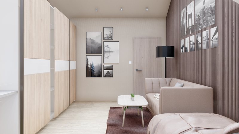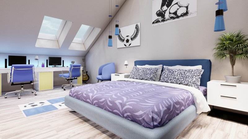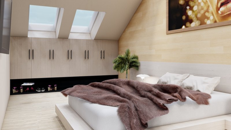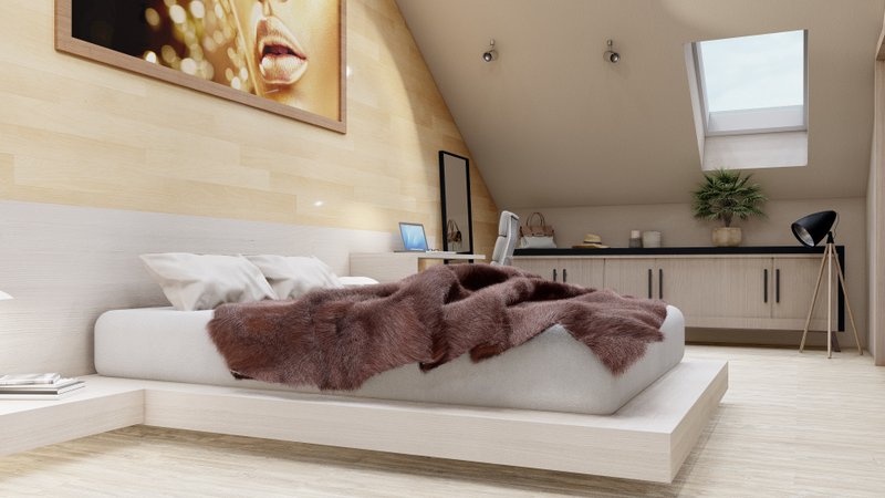 Dům se stává v přízemí z obývacího pokoje s kuchyňským koutem (78,7m2), vstupní chodbou (15,1m2), WC (2,5m2), komora (2m2), šatna (4,55m2), garáž (54,5m2). Z přízemí vede samonosné dřevěné schodiště do podkroví, které tvoří ložnice (24,3m2), pokoj (20m2), dětský pokoj (15,6m2, koupelna (10m2), chodba (46,2m2), prádelna (9,9m2).